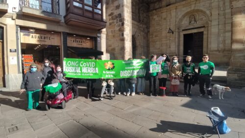 DURANGO | Long Covid Euskal Herria plataformak kontzentrazioa egin du gaur Durangon, covid iraunkorra duten pertsonei erakundeen arreta falta salatzeko. Mobilizazioa Andra Mari elizaren parean izan da, 12:00etan, eta hainbat pertsona bildu dira bertan, osasun sistemarentzat eta administrazioentzat ikusezina izaten jarraitzen duen gaixotasun bat ikusarazteko.