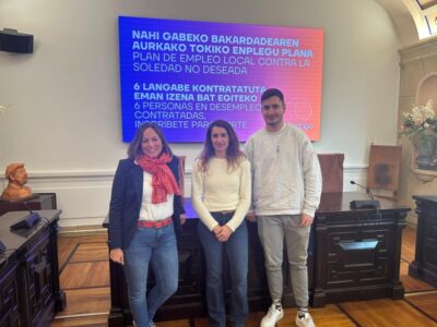 DURANGO | Durangoko Udalak goizean aurkeztu du Tokiko Enplegu Plana, bakardade ez-desiratua bizi duten pertsona helduei laguntza eskaintzera bideratuta. Lanbideren 75.000 euroko dirulaguntzari eta Udalaren 3.638,73 euroko ekarpenari esker, sei emakume kontratatu dira —zerbitzuko koordinatzaile bat eta bost laguntzaile—, denak 45 urtetik gorakoak eta 75%eko lanaldiarekin. Taldeak urtarrilaren 26an ekingo dio lanari, eta programa ekainaren 30era arte luzatuko da. “Programa honek kolektibo kalteberentzat lan-aukerak sortzeaz gain, gure komunitatearen gizarte-premia nagusietako bati heltzen dio: bakardade ez-desiratuaren aurkako borrokari”, nabarmendu du Jésica Ruiz Gizarteratze zinegotziak.