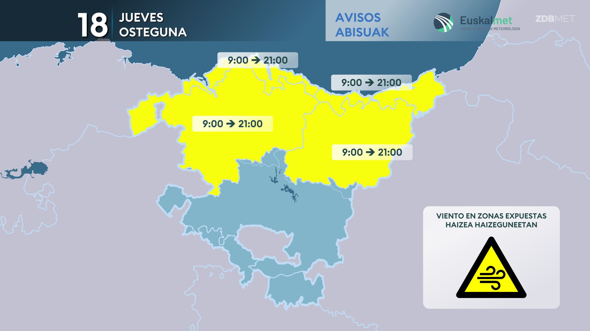 EGURALDIA | Ostegunean hegoaldeko haizea nagusituko da eta tenperaturak gora egingo du. Erdi mailako hodeiak eta goi-hodeiak agertuko dira eta tarteka zerua zurixka utziko dute, baina oro har eguna argia eta une askotan eguzkitsua izango da. Haizeak tarteka zakar joko du, batez ere mendi inguruetan, baina tenperaturari igotzen lagunduko dio ipar partean eta bertan giroa epela izango da. Arratsalde-gauean hodeiak ugarituz joango dira fronte baten eskutik, eta ez dugu baztertzen eguna bukatu aurretik mendebaldeko zenbait tokitan lehen tantak botatzea. Behe-lainoa sortuko da zenbait bailaretan eta Ebro ibarreko zenbait tokitan luze iraun dezake.